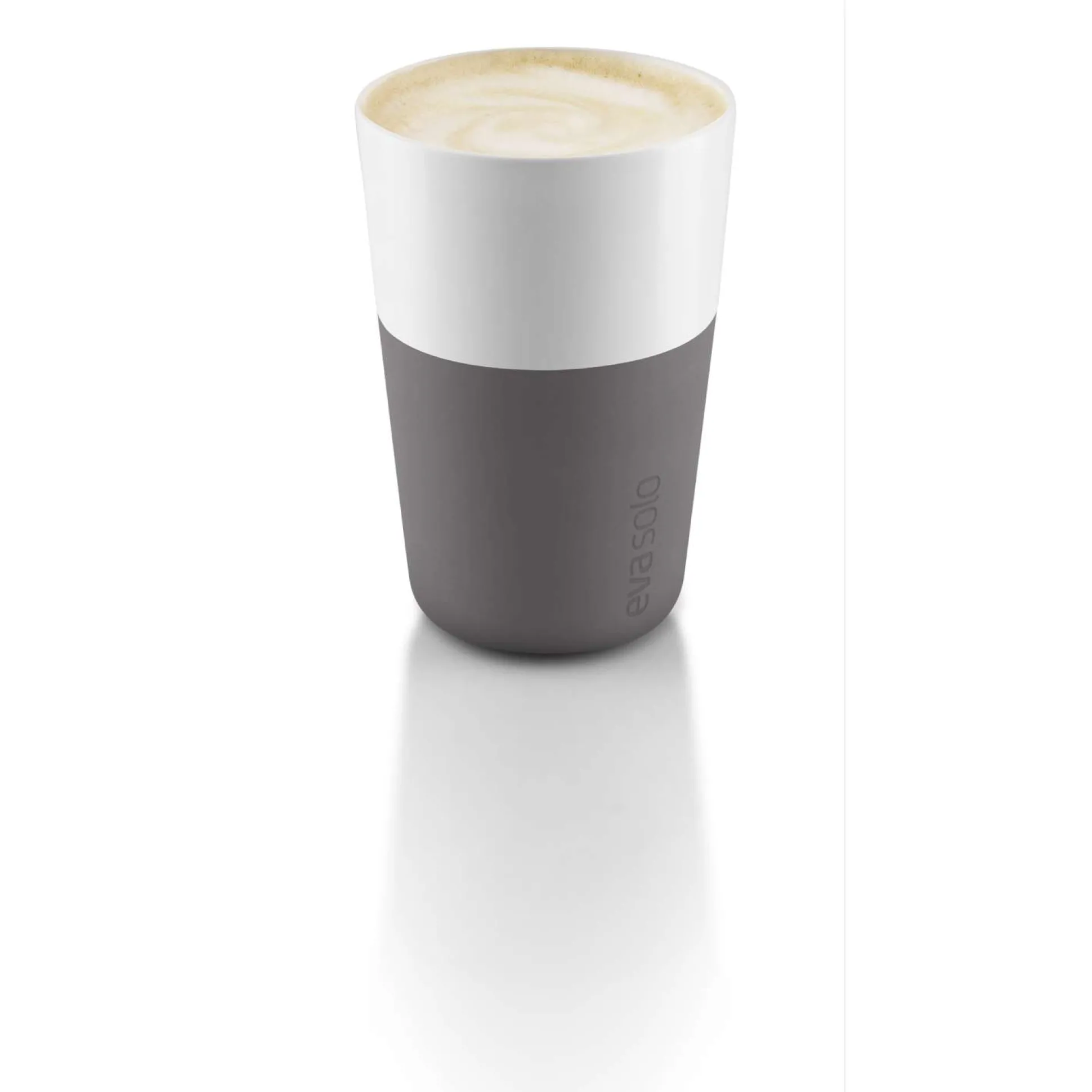 Café Latte-muggen från Eva Solo rymmer 360 ml, vilket motsvarar den mängd kaffe och mjölk som är standardinställningen på de flesta populära kapselkaffemaskiner. Muggen är tillverkad av porslin och har ett silikonskal som ger ett bra grepp.