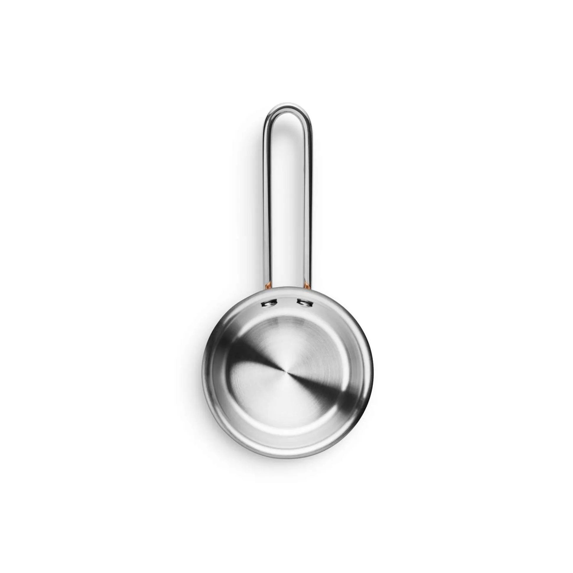 Den dekorativa serveringskastrullen är perfekt för att visa upp små rätter, såser eller tillbehör. Kastrullen är tillverkad av koppar och rostfritt stål. Koppar är en utmärkt värmeledare som håller innehållet vid rätt temperatur. Det rostfria stålet på insidan gör det möjligt att använda stålredskap, t.ex. för att röra om såser före servering, utan att skada beläggningen. Observera att kastrullen inte kan användas på induktionsspisar.