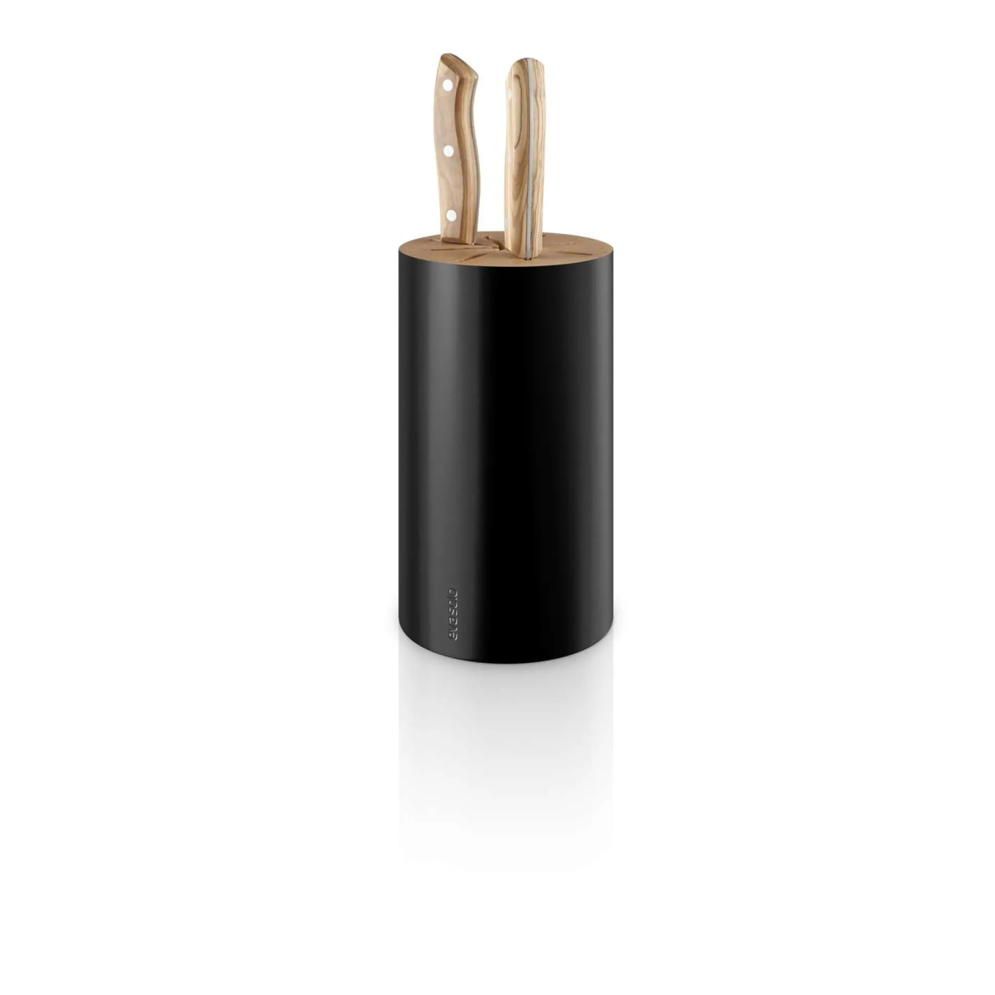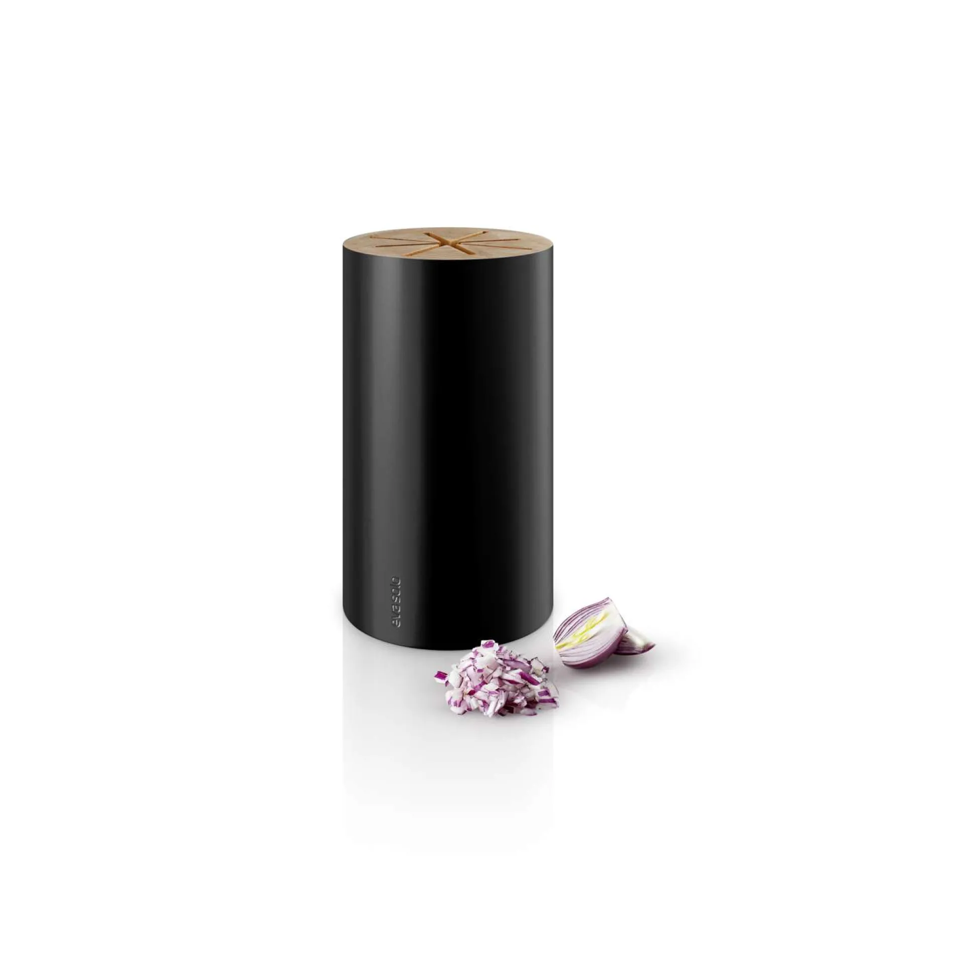 Knivblocket i Nordic kitchen-serien är designat som en trästubbe och både rustikt och elegant. Spåren för knivbladen går hela vägen genom knivhållaren, så att brödsmulor och dylikt inte kan fastna eller samlas på botten. Knivblocket finns i svart och vitt, har plats för åtta knivar och rengörs med en fuktig trasa.