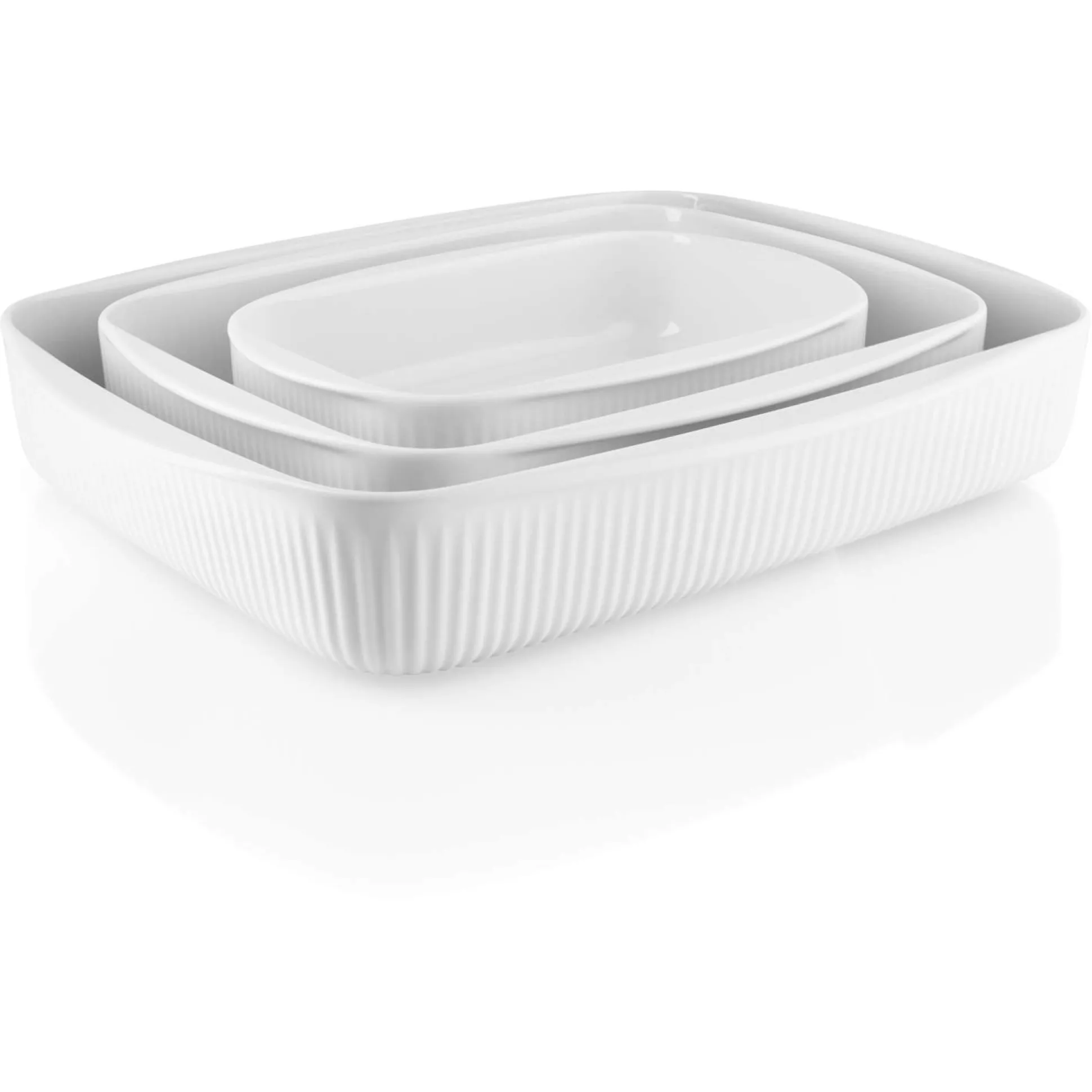 Ugnsfast form med Legio Nova-servisens karakteristiska räfflor pryder bordet samtidigt som de är praktiska med många användningsmöjligheter, från ugns- och grillrätter till frukt och sallad. De platta kanterna ger ett bra grepp och formen kan tas från frysen och ställas i ugnen eller direkt på grillen.
