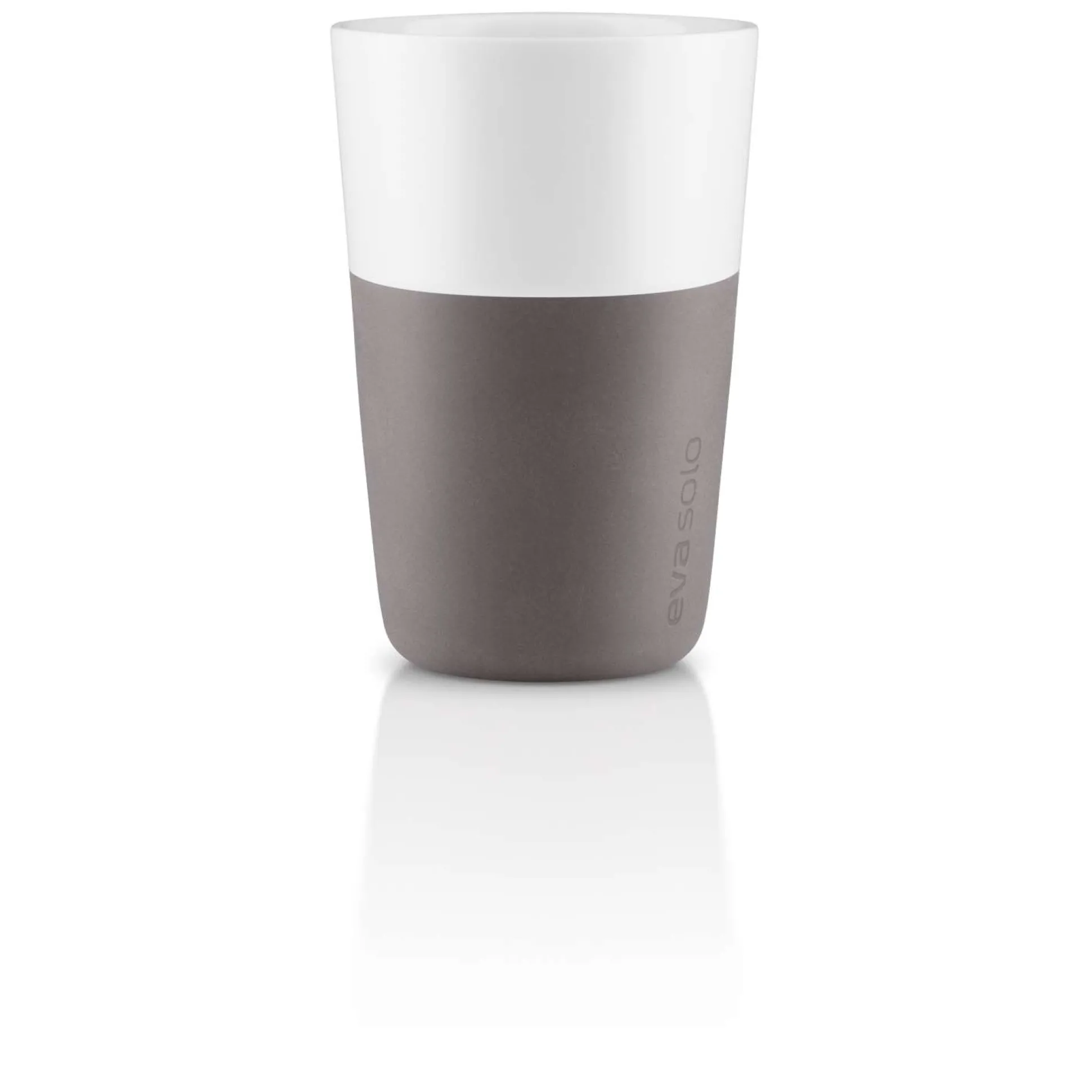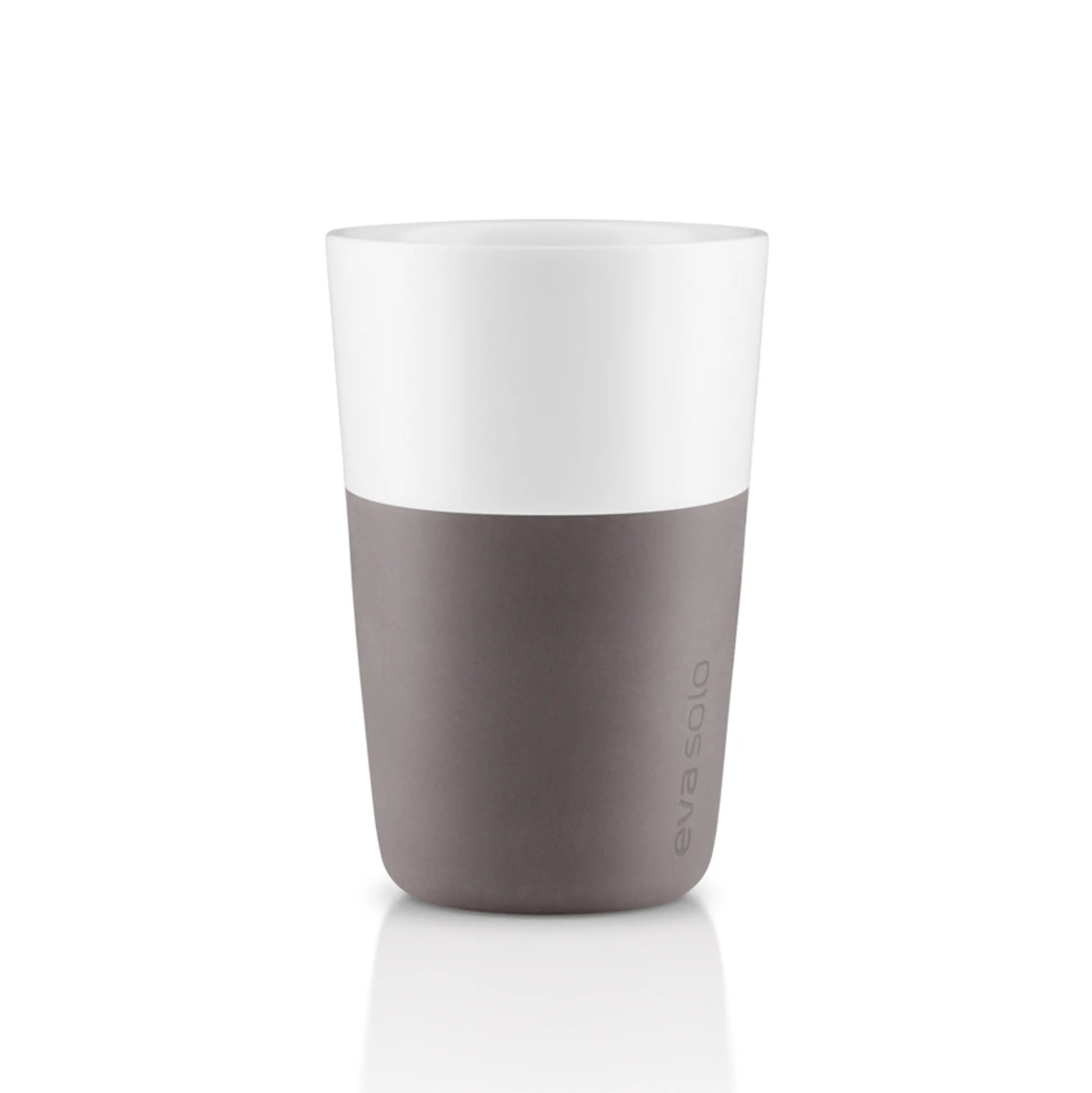 Café Latte-muggen från Eva Solo rymmer 360 ml, vilket motsvarar den mängd kaffe och mjölk som är standardinställningen på de flesta populära kapselkaffemaskiner. Muggen är tillverkad av porslin och har ett silikonskal som ger ett bra grepp.