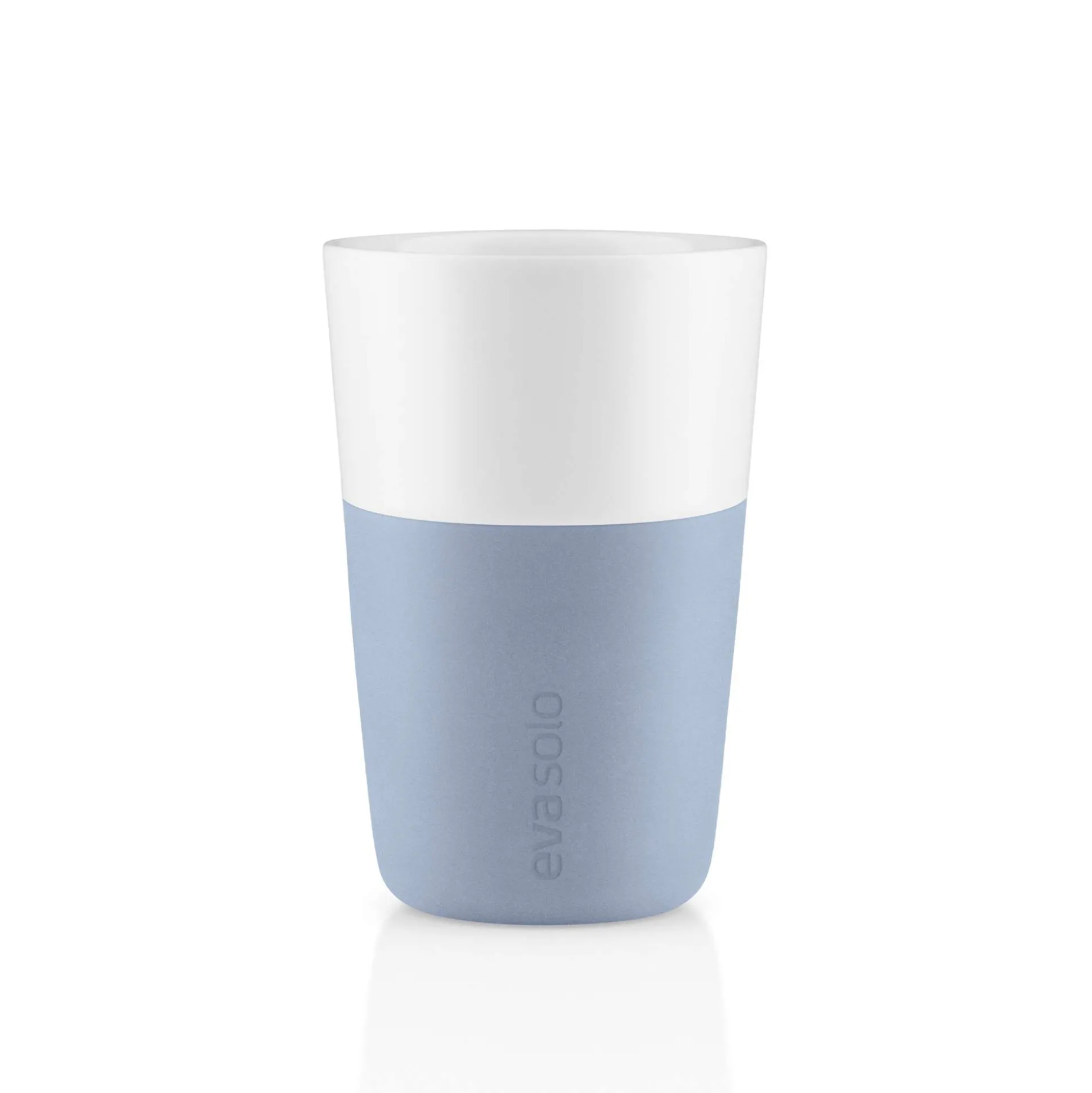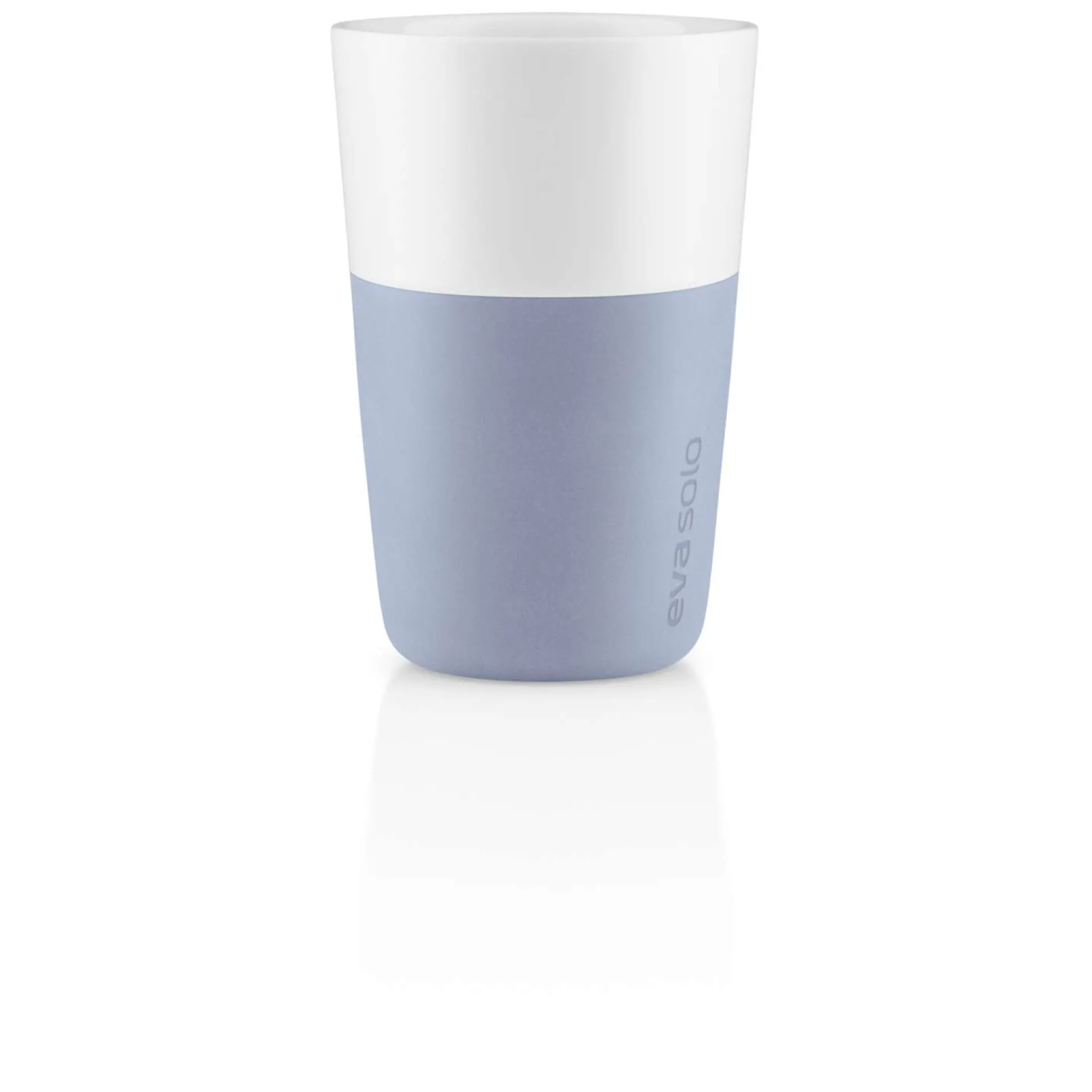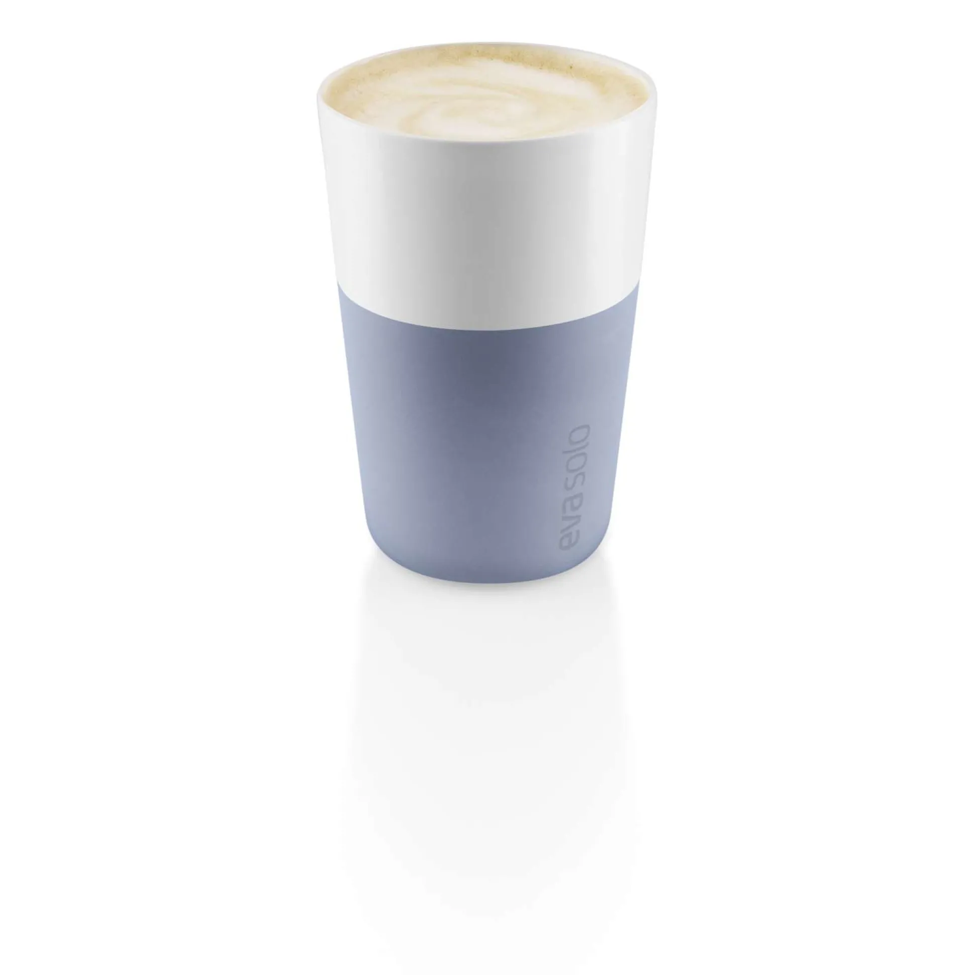 Café Latte-muggen från Eva Solo rymmer 36 cl, vilket motsvarar den mängd kaffe och mjölk som är standardinställningen på de flesta populära kapselkaffemaskiner. Muggen är tillverkad av porslin och har ett silikonskal som ger ett bra grepp och gör att du inte bränner fingrarna. Tål maskindisk – ta av silikonskalet innan båda delarna maskindiskas. Finns i flera färgerna.