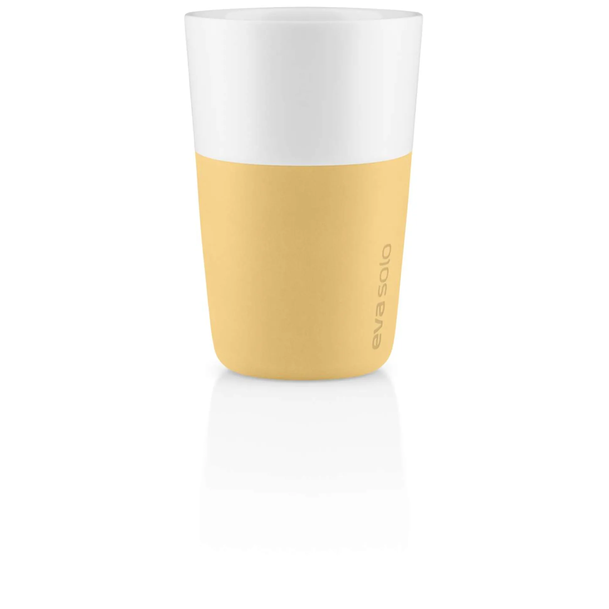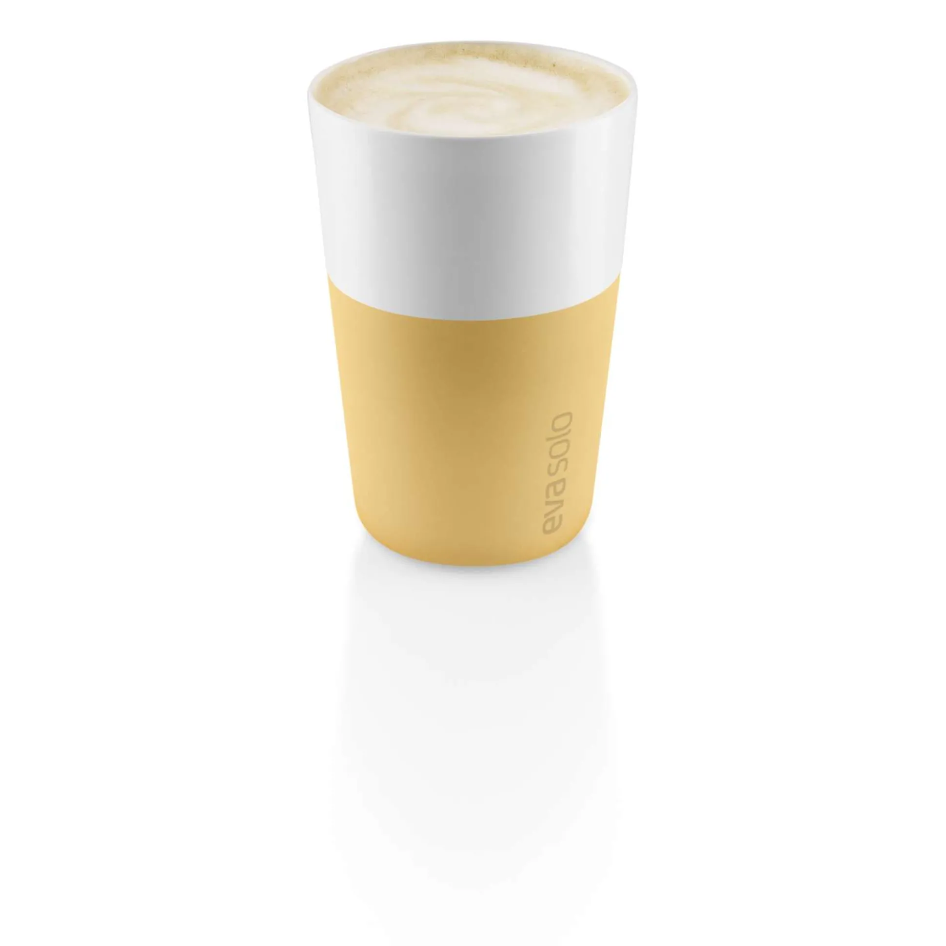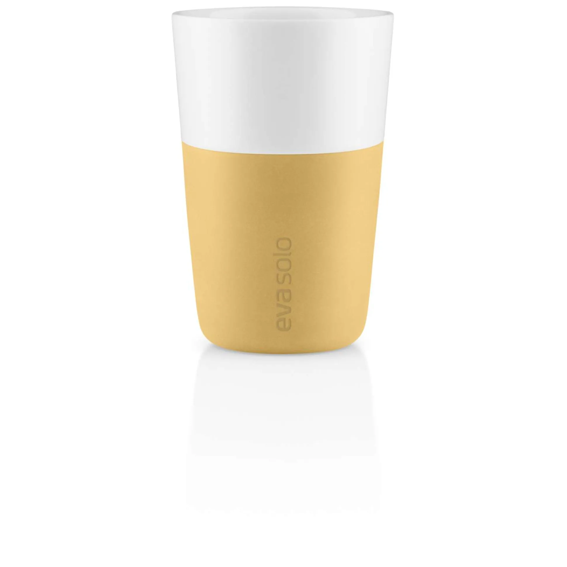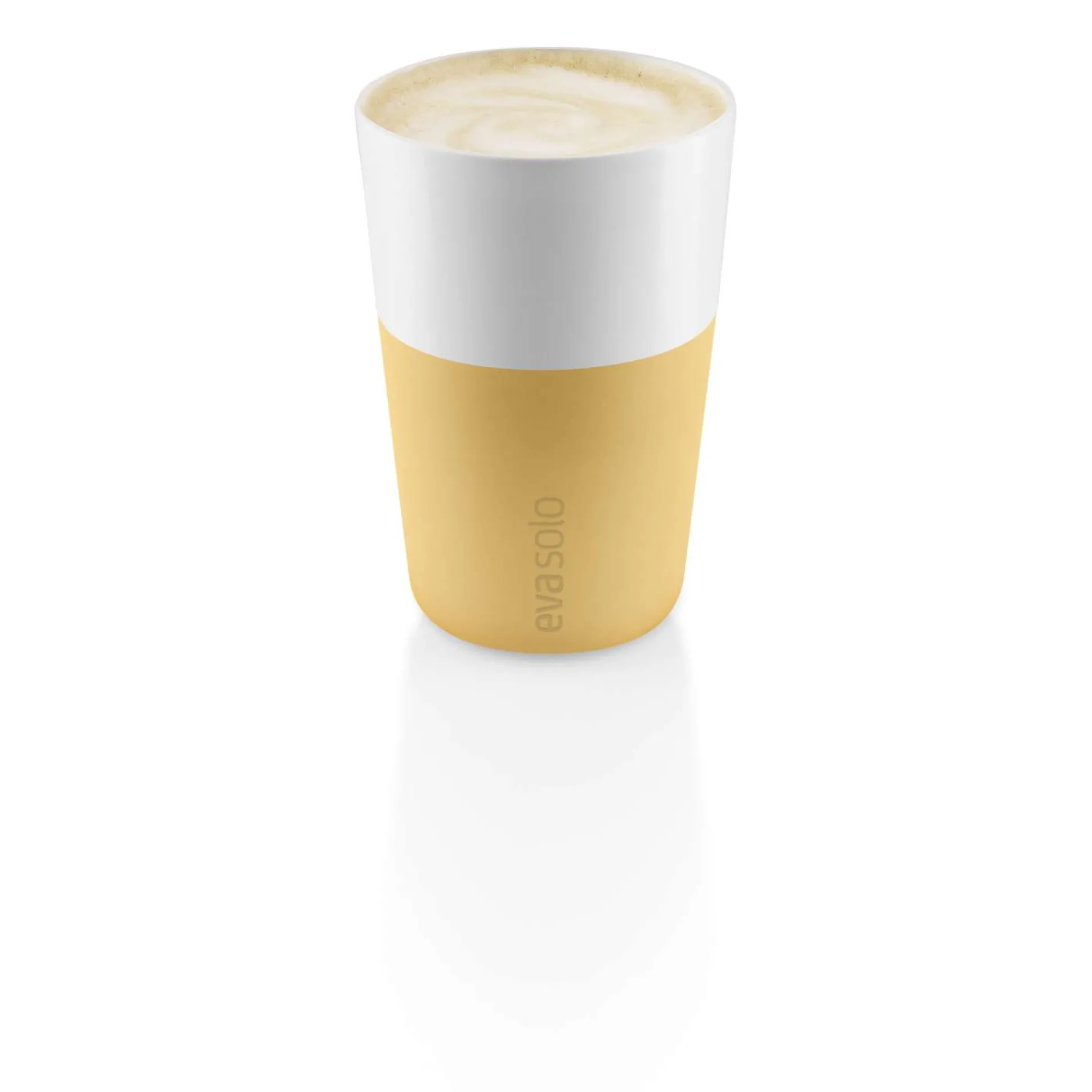 Café Latte-muggen från Eva Solo rymmer 36 cl, vilket motsvarar den mängd kaffe och mjölk som är standardinställningen på de flesta populära kapselkaffemaskiner. Muggen är tillverkad av porslin och har ett silikonskal som ger ett bra grepp och gör att du inte bränner fingrarna. Tål maskindisk – ta av silikonskalet innan båda delarna maskindiskas. Finns i flera färgerna.