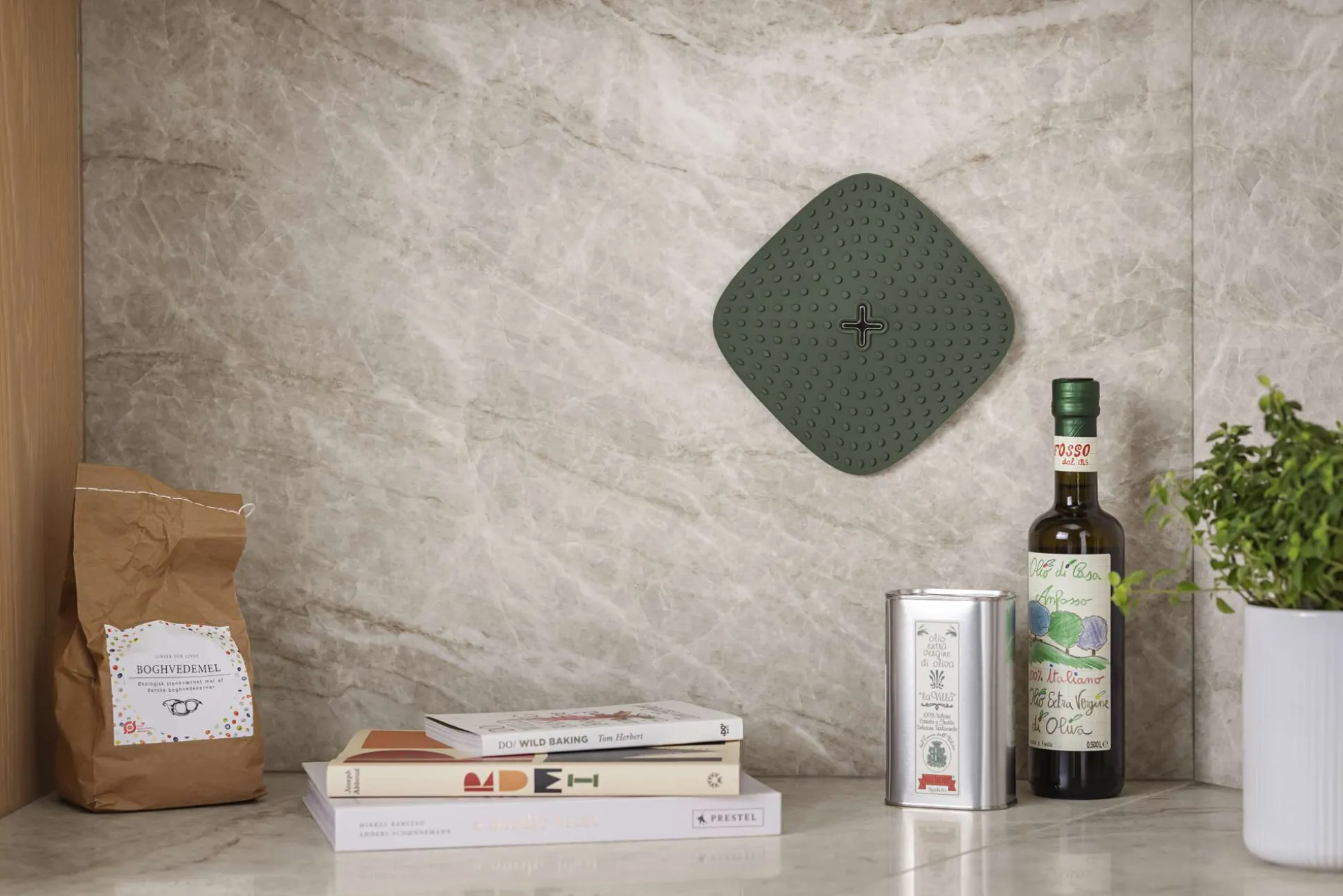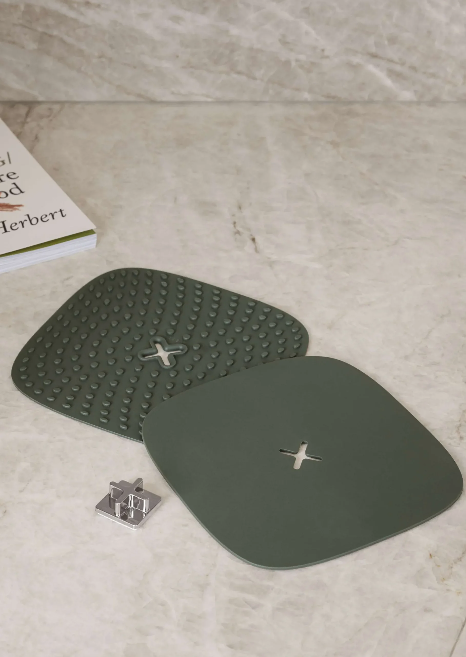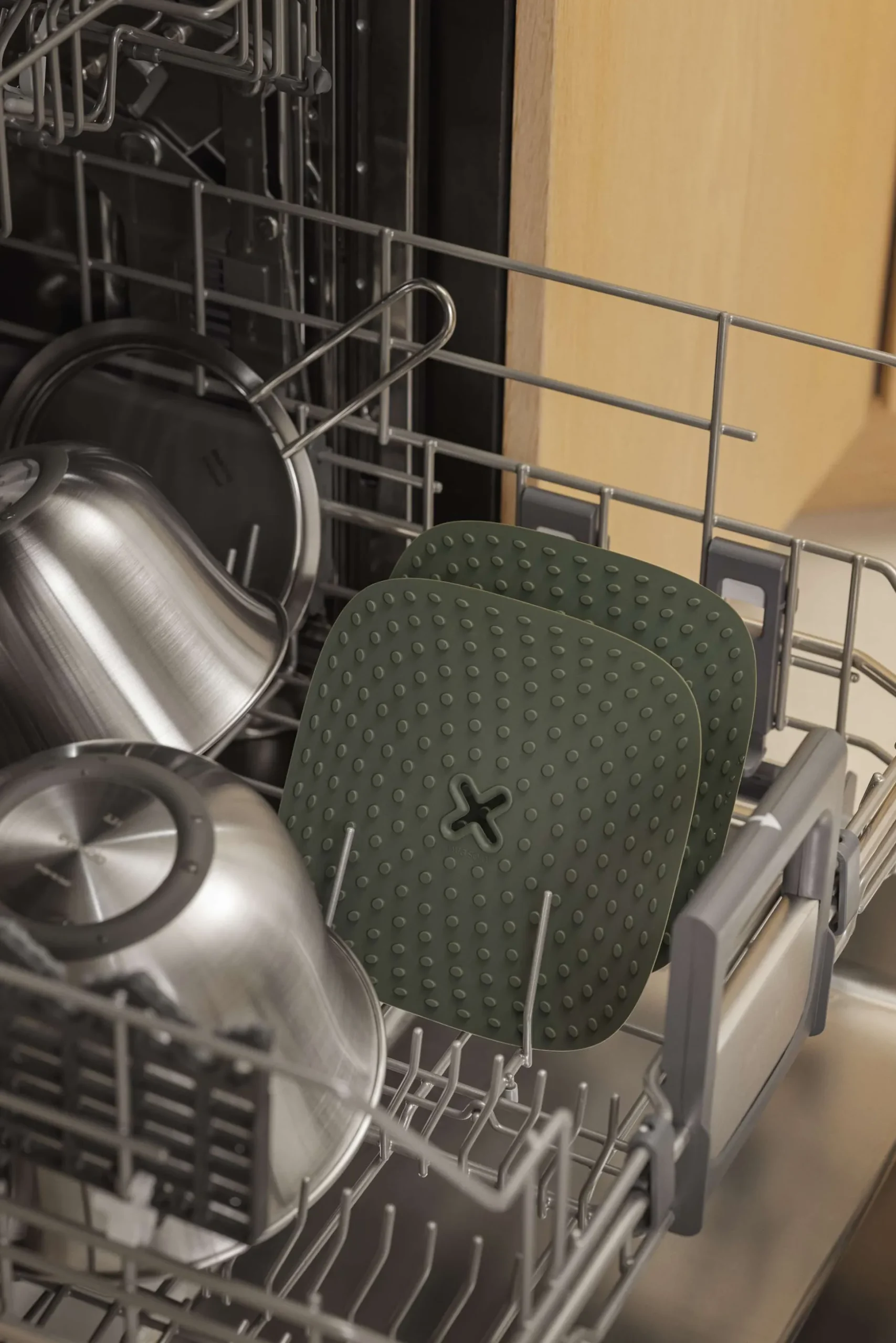 Flexibla grytlappar i silikon ger dig optimal säkerhet och komfort när du hanterar varma kokkärl och köksredskap. De fungerar också som grytunderlägg under varma rätter. Grytlapparna har en nubbad yta som ger extra bra grepp. Tillverkade av silikon, ett praktiskt och hygieniskt material som är lätt att rengöra och underhålla. Silikon absorberar inte vätskor, vilket förhindrar bakterietillväxt. Det smarta upphängningssystemet med självhäftande tejp gör det enkelt att placera grytlapparna där du oftast behöver dem. Rengör dem under vattenkranen eller låt dem följa med i diskmaskinen.
