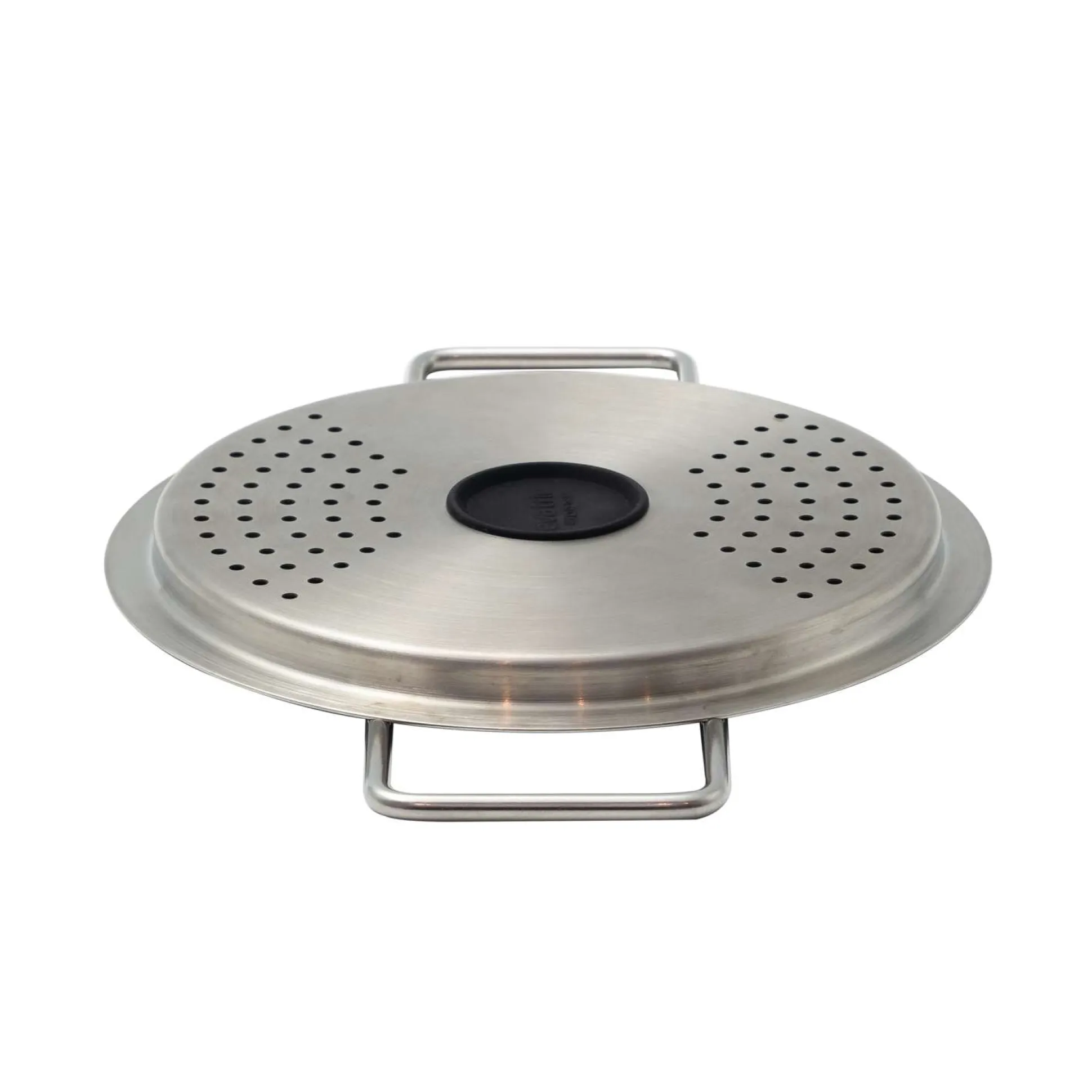 Häll snabbt och enkelt av vattnet från pastan och potatisen. Hällocket i rostfritt stål är försett med en inbyggd sil som är täckt med en silikonduk. När du häller släpper silikonduken automatiskt från locket, så att vattnet kan rinna ut genom silen.