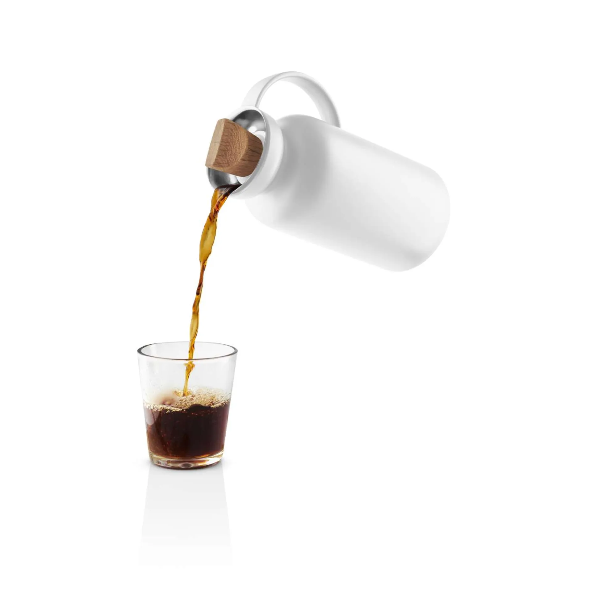 Bakom Silhouette-termosens inbjudande exteriör gömmer sig en stålinsats som gör termosen robust och härdig, och den tål till och med maskindisk (dock inte locket som ska torkas av med en lätt fuktad trasa). Termosen håller värmen i timmar och en praktisk hällkrage i stål förhindrar att innehållet droppar på bordet. Ekträet underhålls genom regelbunden oljning.