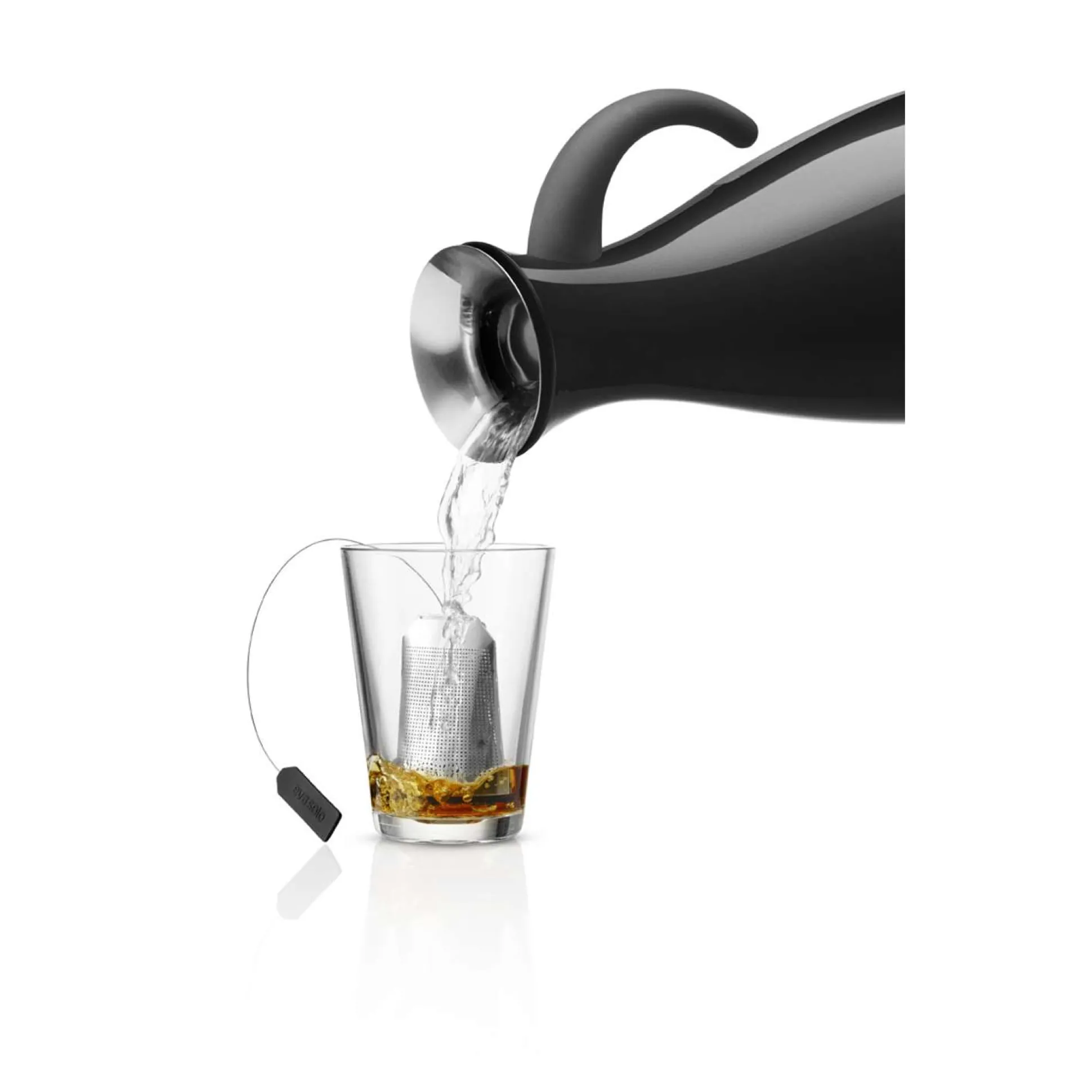 Termoskannan lämpar sig för både snabbkaffe, bryggkaffe och te. Både Eva Solo tesil som bryggtratt får plats i kannans öppning.