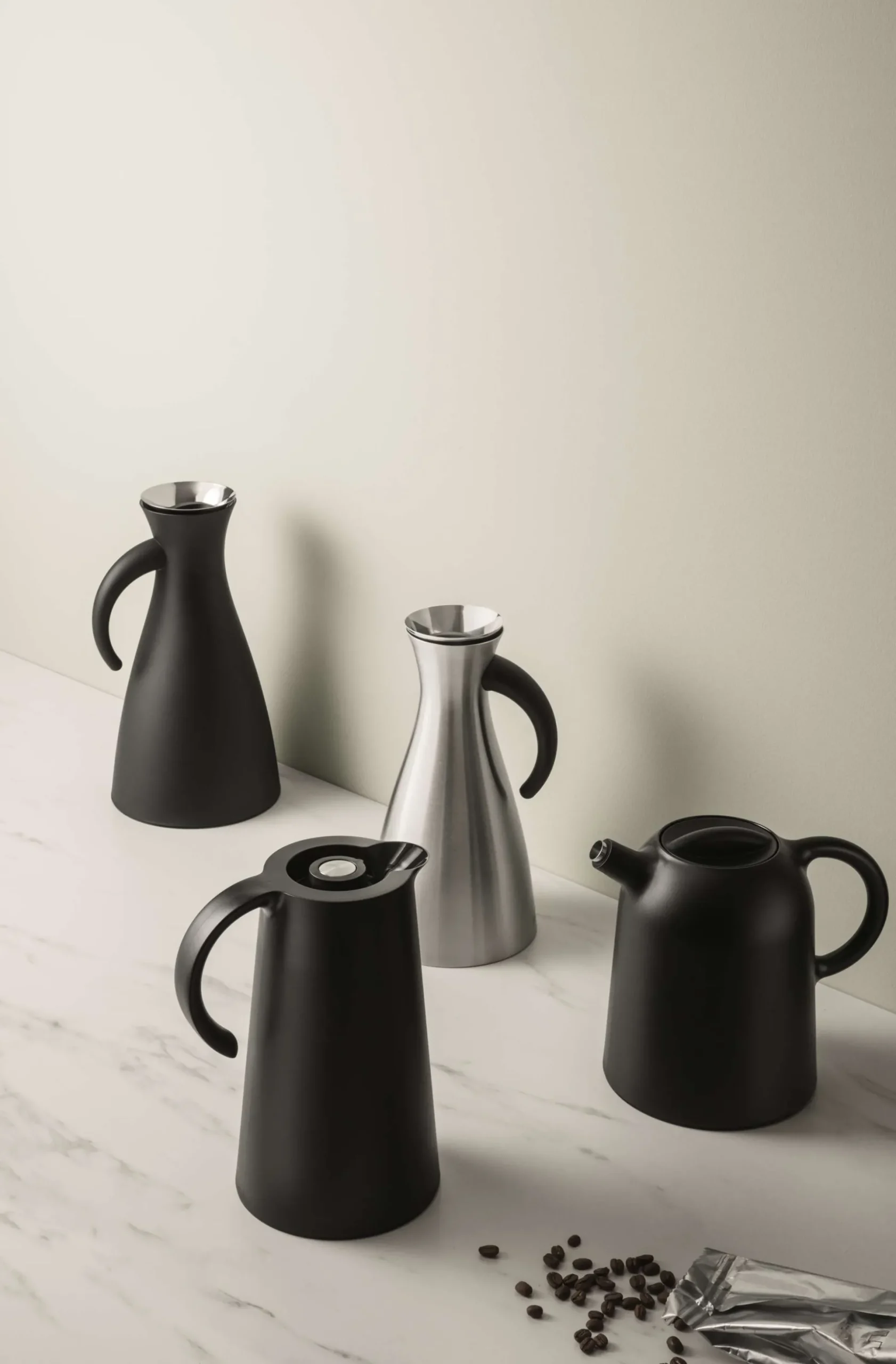 Ståltermoskannans vakuumeffekt gör att den håller värmen länge och den praktiska hällkragen gör att kannan är 100 % droppfri.