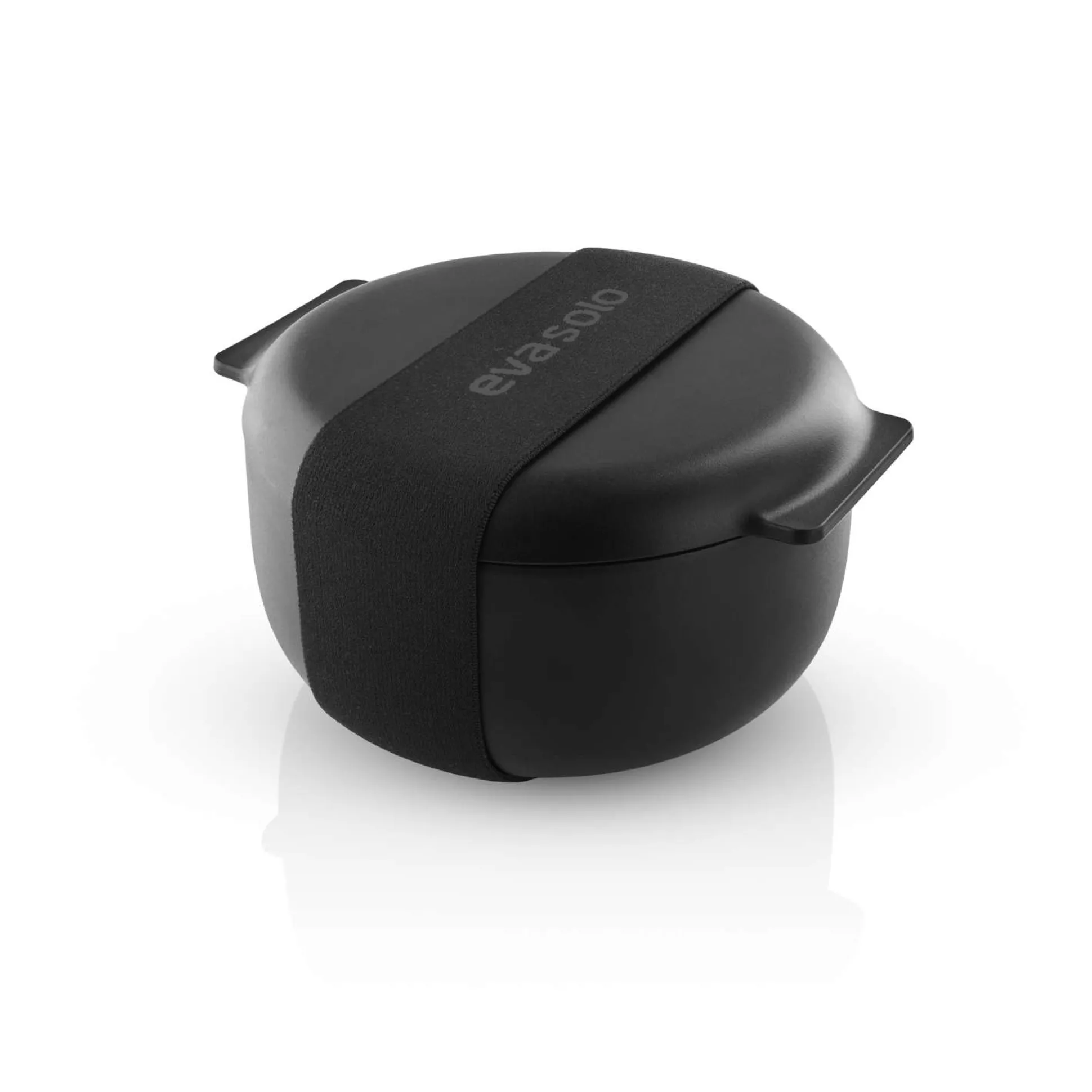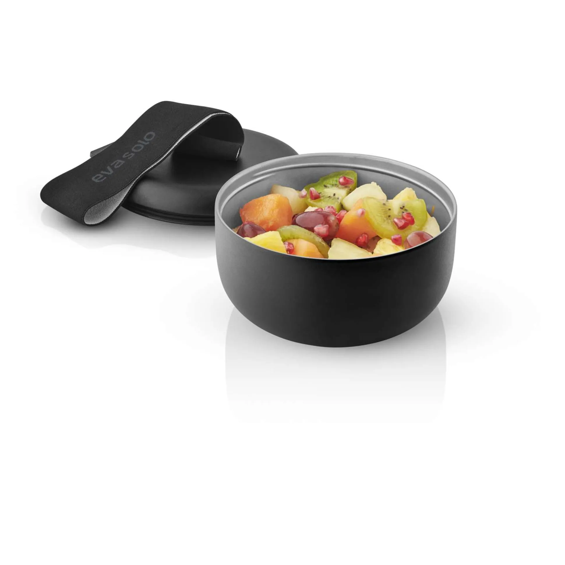 - Håller maten kall längre när du har tagit fram den ur kylskåpet – termosskål och lock med dubbla väggar håller kylan. Stilrent elastiskt band medföljer