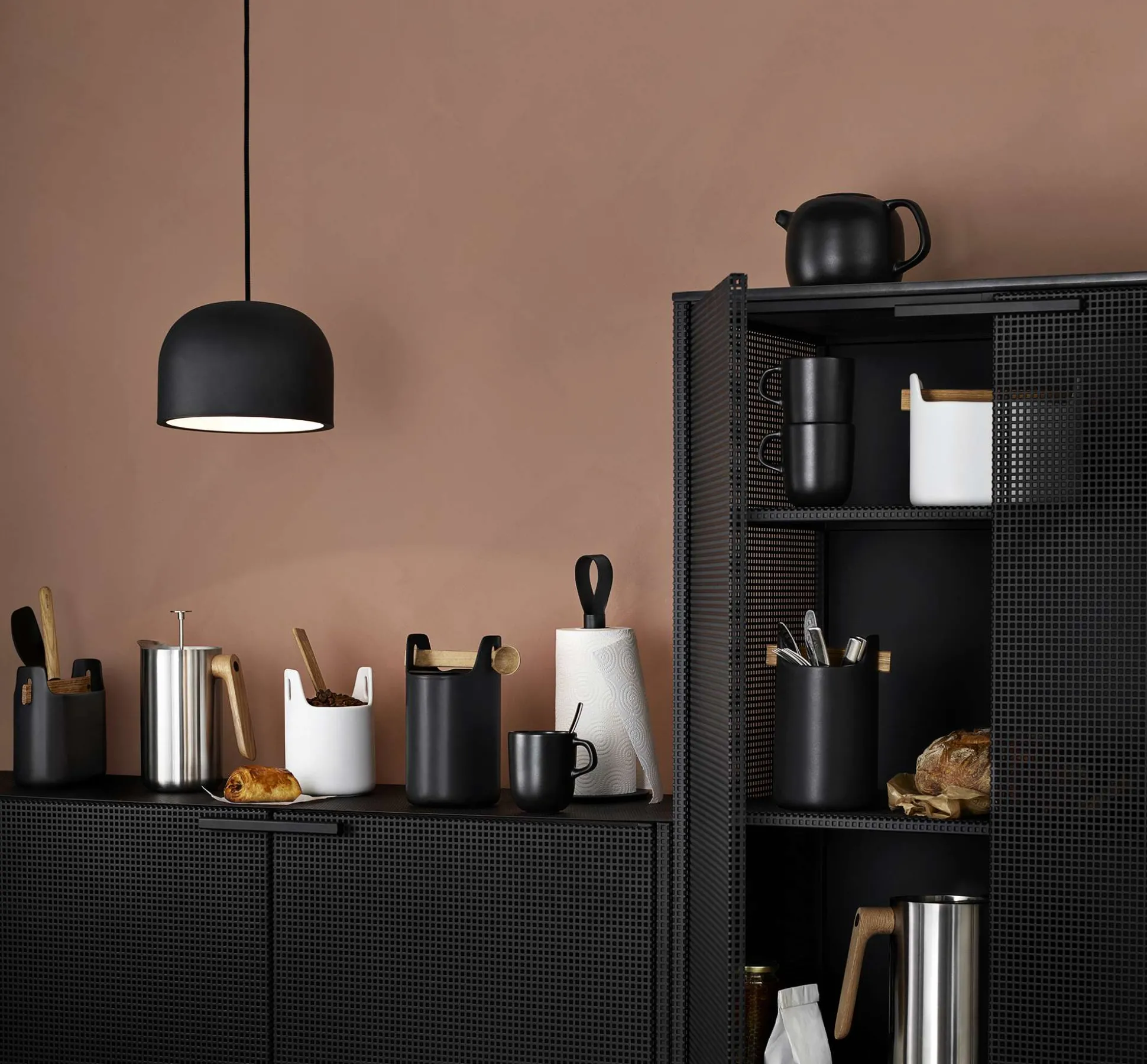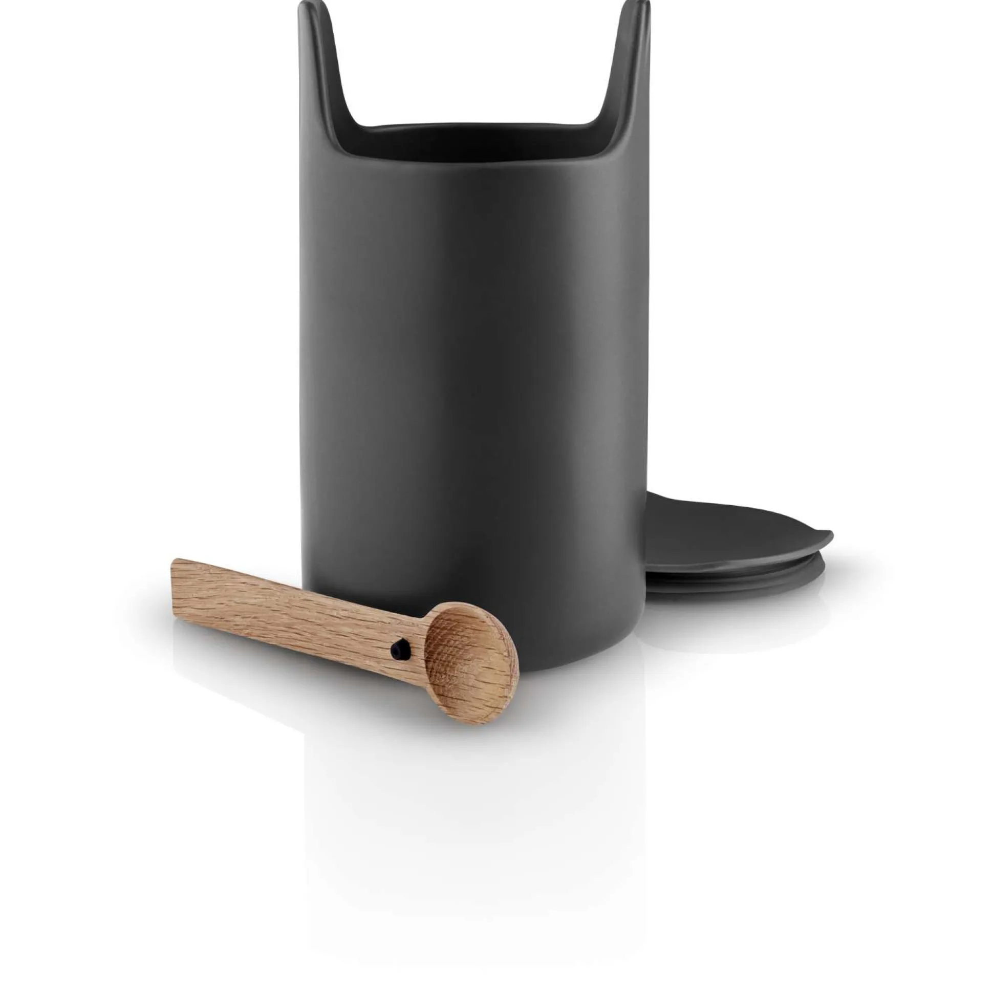 Denna praktiska förvaringsburk hjälper dig att hålla köksbordet rent och kan användas till olika typer av råvaror, såsom salt, mandlar eller russin. Locket är tätslutande och ser därmed till att smaken bevaras. Burkens design är modern och passar med sin blandning av enkla material in i det moderna nordiska köket.